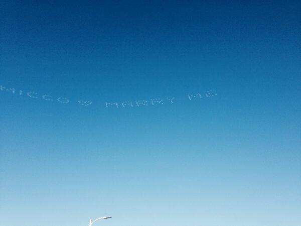 Позже выяснилось, что девушка действительно согласилась выйти замуж. Об этом свидетельствовала следующая надпись в небе с текстом: «Микко сказала - да».