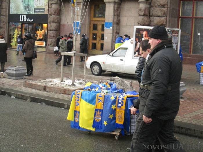 Однако нельзя грести всех под одну гребенку. Среди продавцов сувенирной продукции многие сочувствуют митингующим, а есть и те, кто вырученные деньги готов пожертвовать евроактивистам.